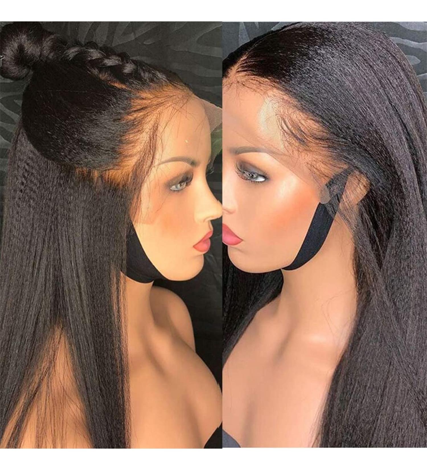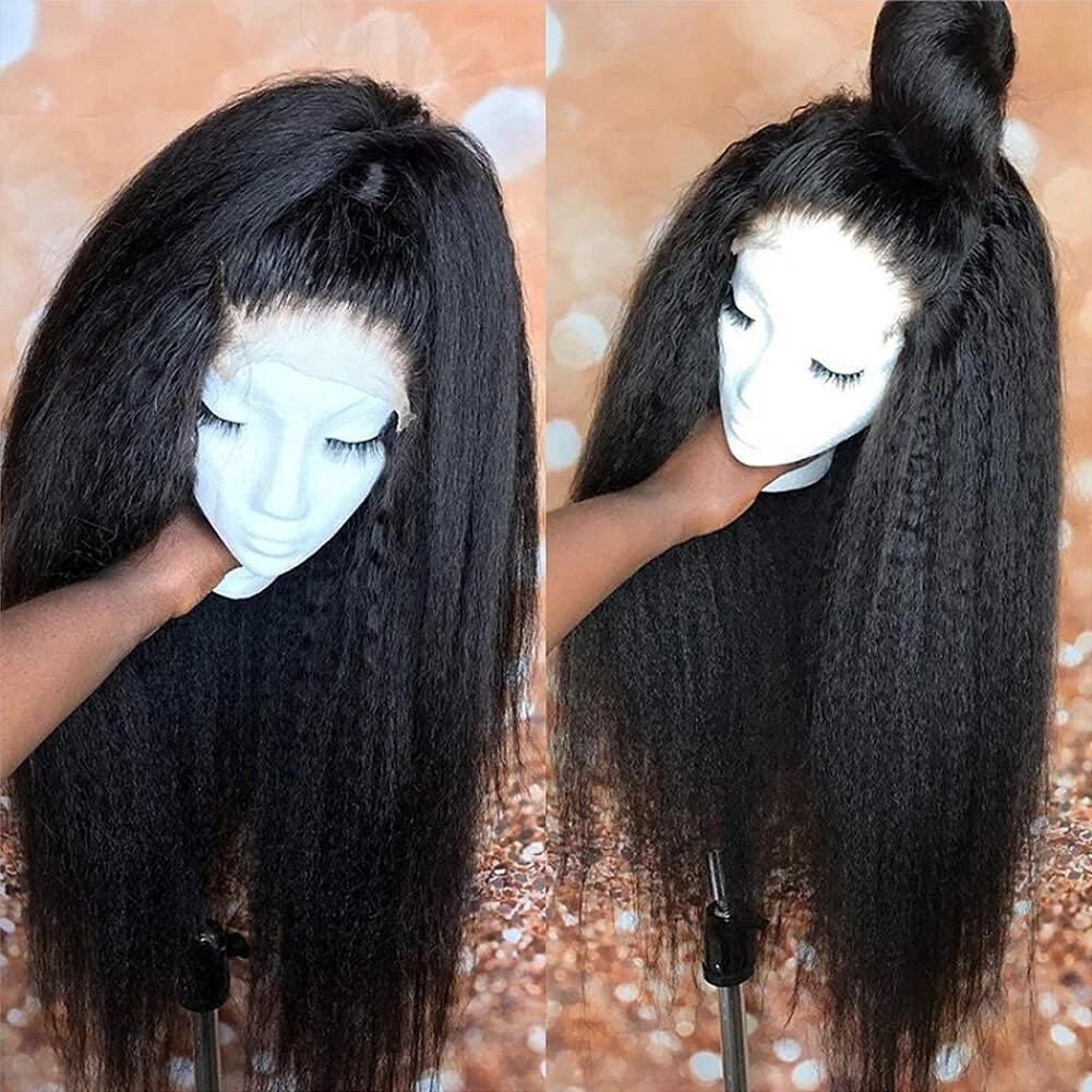 Kinky Straight Full Lace Human Hair Wig Natural Color Brazilian Remy with Custom Density & Styling Versatility